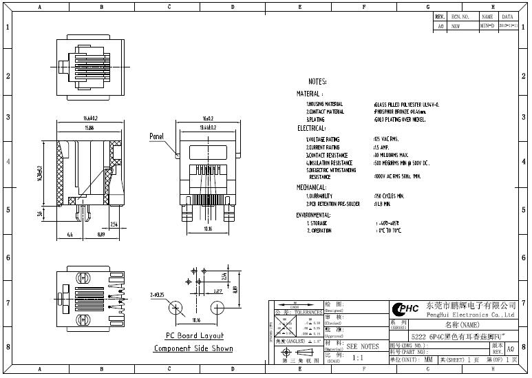 订购:RJ11母座 6P6C 180度全塑有耳 以太网连接器