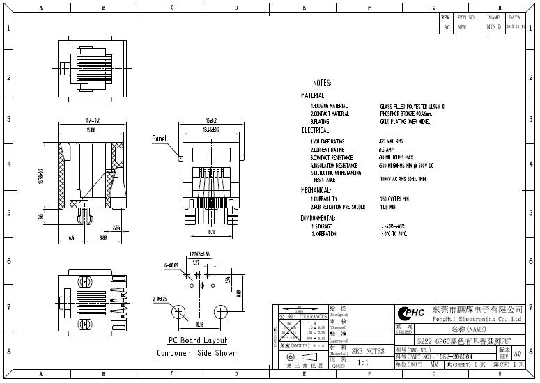 RJ11母座 6P6C 180度全塑有耳 以太网连接器
