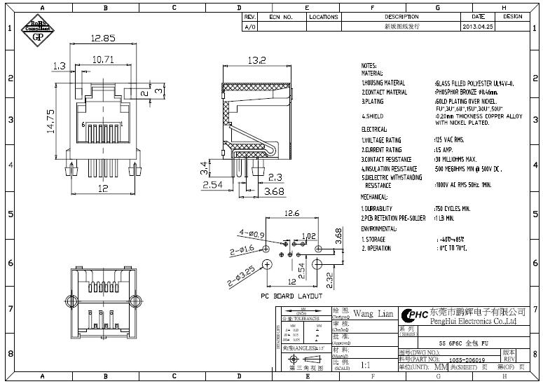 订购:1055-206019 55 6P6C 带屏蔽无耳 RJ11电话插座