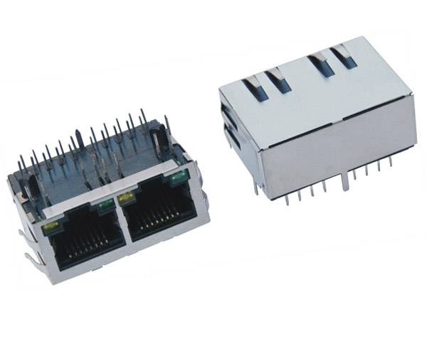 RJ45带滤波器 1X2 带灯带弹